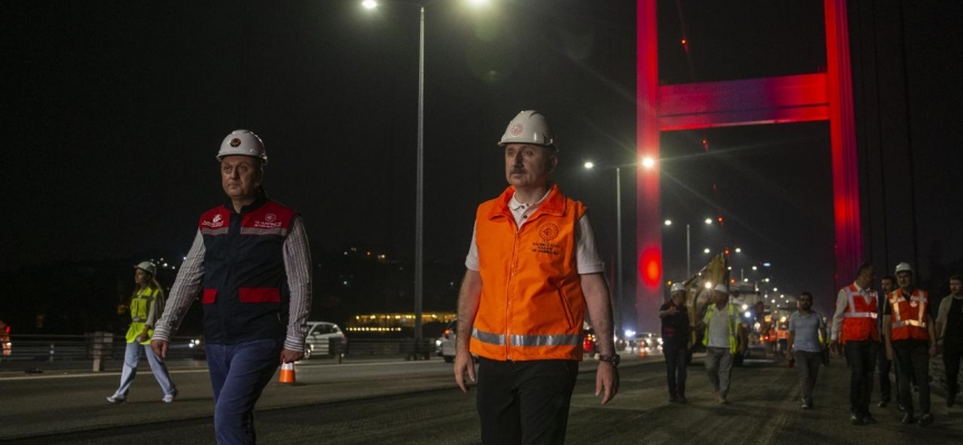 Bakan Karaismailoğlu, sabah saat 10.00'a kadar sürecek yenileme çalışmaları hakkında bilgi aldıktan sonra basın mensuplarına yaptığı açıklamada, FSM Köprüsü'nün dünyanın en yoğun trafiğinin yaşandığı köprülerinden olduğuna işaret ederek, günlük ortalama 240 bin aracın seyahat ettiğini söyledi.