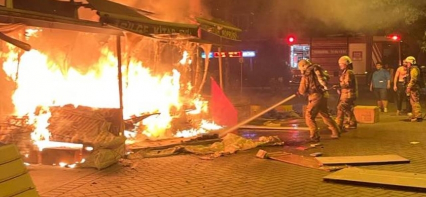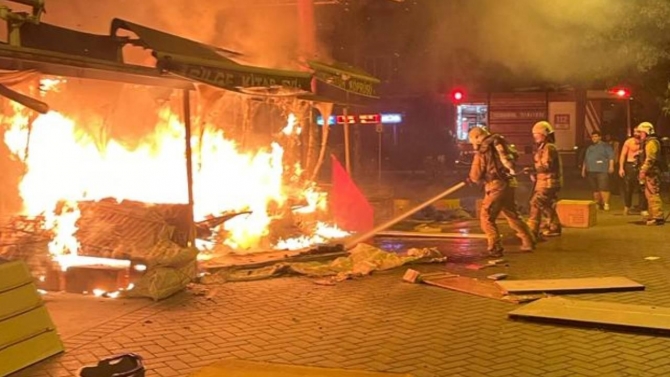 Zuhuratbaba Mahallesi'nde bulunan Kitapçılar Köprüsü'nde kitap satılan bir tezgah, iddiaya göre, kimliği henüz belirlenemeyen bir şüpheli tarafından ateşe verildi.
