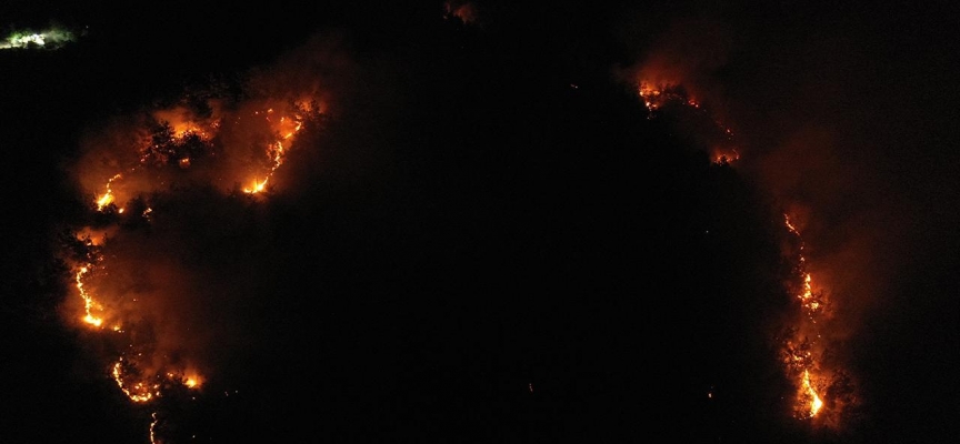 Dün akşam saatlerinde çıkan yangına, 2 uçak, 5 helikopter, 35 arazöz, 8 su ikmal aracı, 4 kara ekibi, 5 dozer ve 220 personelle müdahale edilmiş, havanın kararmasıyla da gece görüşlü helikopter devreye girerek söndürme çalışmalarına destek vermişti.