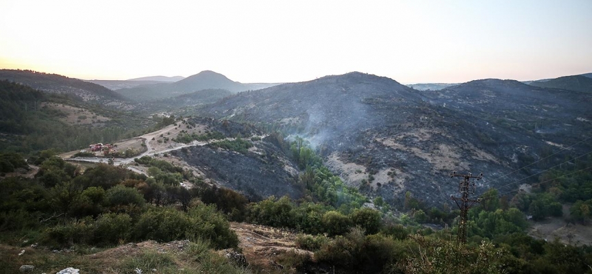 Yangında 50 hektarlık alanın zarar gördüğü bölge drone ile havadan görüntülendi.