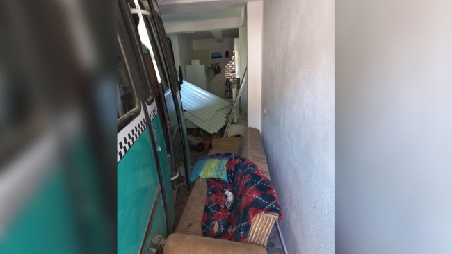 Araç, yol kenarındaki 3 katlı evin bodrum katına girerek durdu. Sürücü ile araçtaki 9 kişi yaralandı.