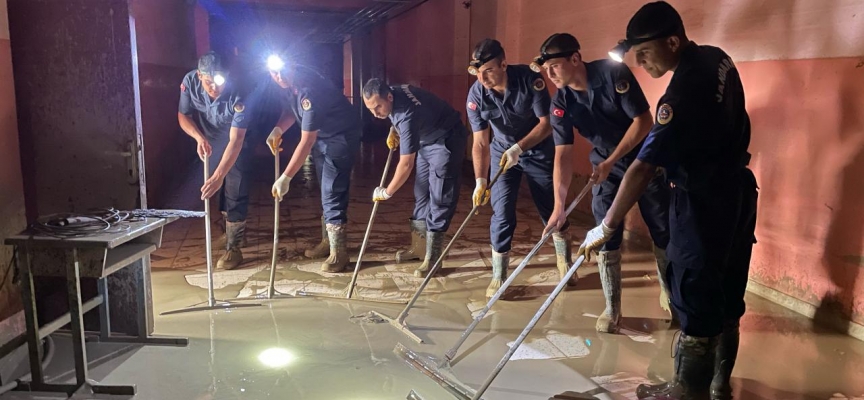AFAD koordinasyonundaki çalışmalar, İl Jandarma Komutanlığı, itfaiye ve belediye ekipleri, çevre illerden gelen iş makineleri ve vidanjörle yürütülüyor.
