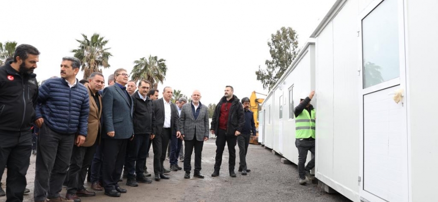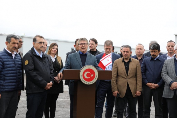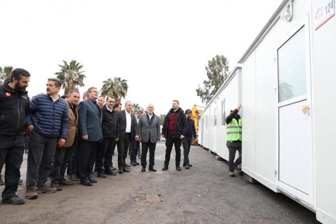 Başbakan Ünal Üstel, Ankara temaslarının ardından Kıbrıs Türk Dayanışma Platformu tarafından imal ettirilip İskenderun’daki ‘Şampiyon Melekler Köyü’ne gönderilen konteyner bölgesinde incelemelerde bulundu.