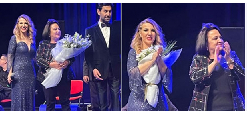 Gecenin sonunda Kanser Hastalarına Yardım Derneği Başkanı Raziye Kocaismail tarafından Zerrin Üstel’e plaket takdim edildi.