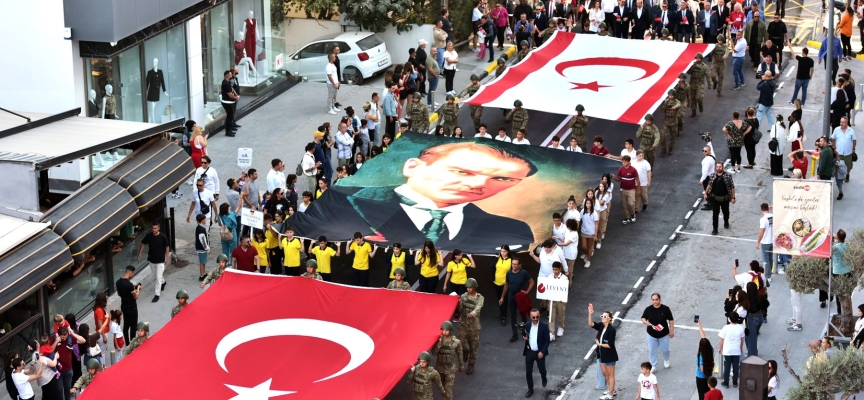 TC, KKTC ve Atatürk bayraklarının taşındığı kortej, güzergah boyunca vatandaşlar tarafından alkışlandı. Pronto çemberinden başlayan kortej , askeri bando eşliğinde Dereboyu Avenue önünde tamamlandı.