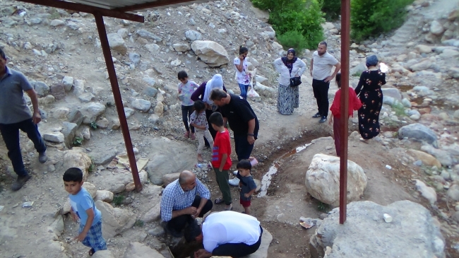 Güneş, “Diyarbakır'ın Bismil ilçesinden geldim. Öncelikle taşları düşürmek, böbreklerde bulunan taşları düşürmek ve bağırsakları temizlemek için birebir faydalıdır. İçimizde taş, kum varsa onları dışarıya atıyor. Daha önce derenin içine akıyordu. Şimdi hortuma bağlayarak çeşme yaptık. 80 yıldır bu çeşme vardır. Şifa arayan vatandaşlar her yerden buraya geliyor. Elazığ’dan, Diyarbakır, Mardin’den Yücebağ’dan gelenler oluyor. Bütün şehirlerden bu çeşmeye gelen vatandaşlar oluyor” dedi.