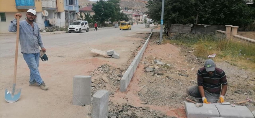 Ekipler, birçok mahallede kaldırım ve yaya alanlarında kilit parke taşı çalışmalarını yerine getiriyor.