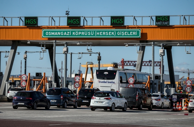 Bayram öncesi 8 Temmuz'da yoğun araç geçişi olan Osmangazi Köprüsü, tatilden dönüşlerde de tercih ediliyor.