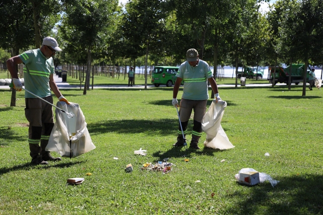 Özellikle yangın riskine karşı önlem aldıklarına vurgu yapan İstanbul Büyükşehir Belediyesi Ağaç ve Peyzaj AŞ Avrupa Yakası Yeşil Alan 1. Bölge Şefi Zehra Turan, "Parklarımızın içerisinde geri dönüşüm atık kutuları da var. Oralara cam şişelerin de atılmasını sağlıyoruz. Cam şişe, cam artığı, pet şişe gördüğümüz yerlerde personelimiz vatandaşlarımızı yangın tehlikesi ihtimaline karşı uyararak çöp poşeti dağıtıyor. Bu şekilde önüne geçebiliriz diye düşünüyoruz" dedi.