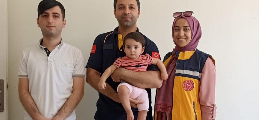 Bebeği Dilvin'in boğazına yabancı cisim kaçınca panikleyen anne, komşusu Yusuf Özdemir'den yardım istedi.