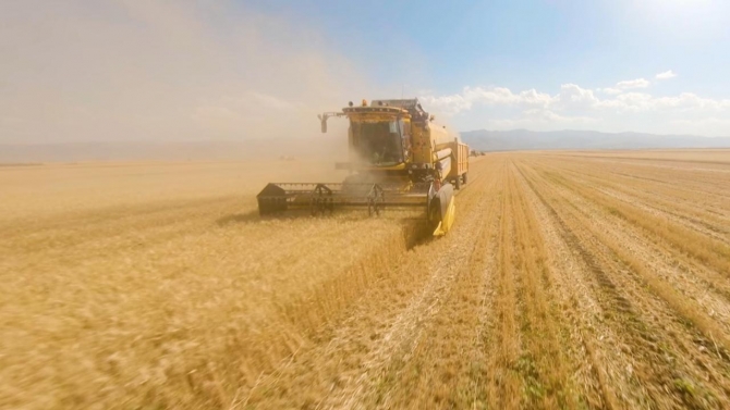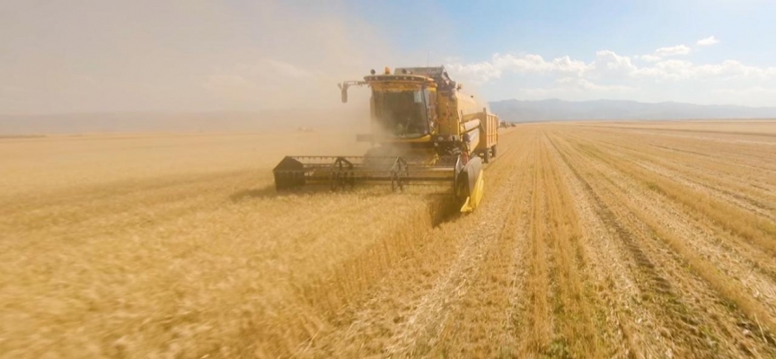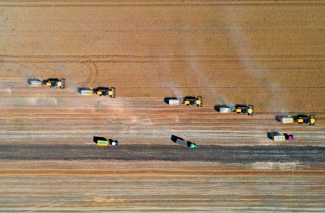 Bu arada, geniş buğday tarlalarında büyük tarım araçlarıyla yapılan hasat, drone ile görüntülendi.