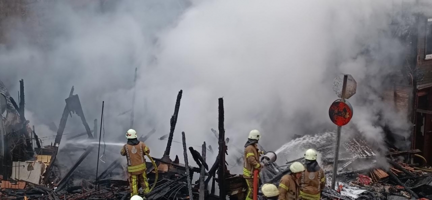 Yangından etkilenen diğer iki binada ise hasar oluştu. İtfaiyenin çevre ilçelerden gelen takviye ekiplerin de katıldığı enkazdaki soğutma çalışması sürüyor.