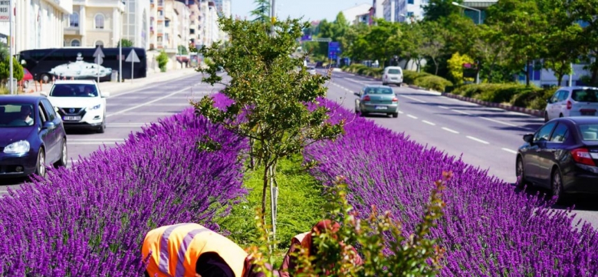 Bilecik'te bu yıl orta refüjlerin bazı kesimlerine deneme amaçlı dikilen lavantalar çiçek açarken, oluşturduğu manzara adeta göz kamaştırdı.