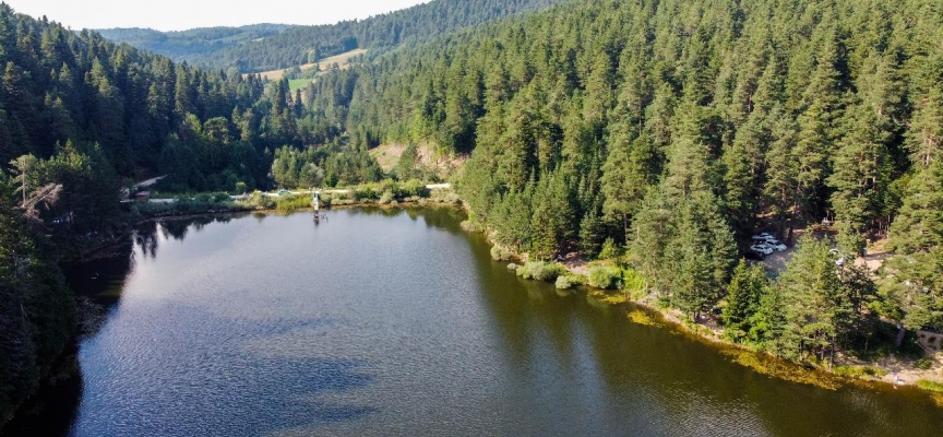Bilecik'in Pazaryeri ilçesine bağlı Bozcaarmut köyü yakınlarında bulunan ve çevresi çam ağaçlarıyla kaplı gölet, temiz havasıyla ziyaretçilerine adeta huzur veriyor.