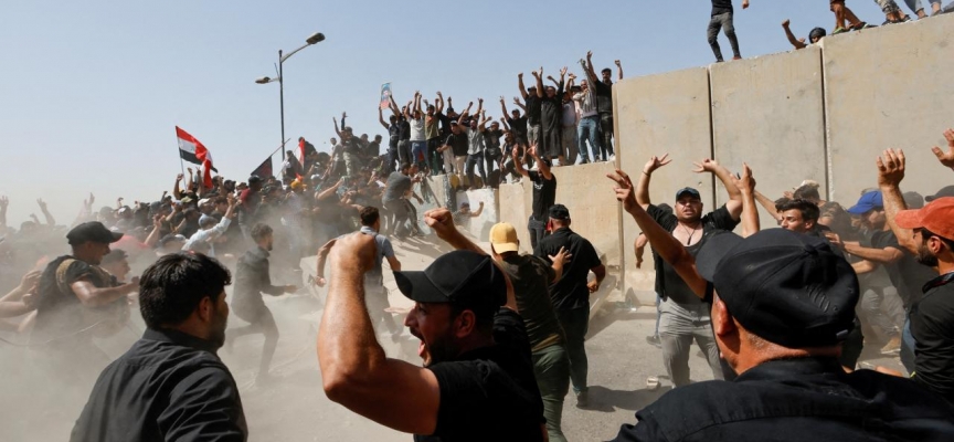 Sadr yanlıları bugün, Irak'ın başkenti Bağdat'ta hükümet binaları ve yabancı misyon temsilciliklerinin bulunduğu Yeşil Bölge'yi basarak meclis binasına girmişti.