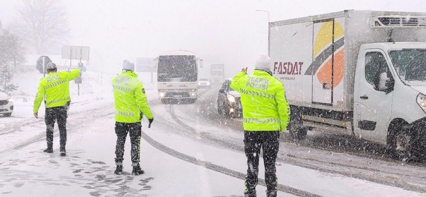 Polis ekipleri, D-100 kara yolunun Elmalık mevkinden araçları geri döndürerek TEM Otoyolu'na girmesini sağlıyor.