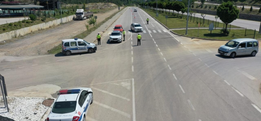 İlçede ekiplerce ayrıca dron ile trafik denetimi de gerçekleştirildi.