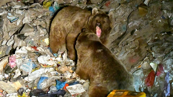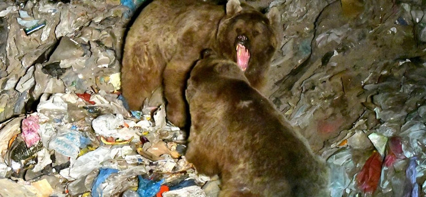 İlçe merkezindeki çöp konteynerlerine ve ilçeye 5 kilometre uzaklıktaki belediyeye ait Acısu mevkisindeki çöplüğe gelerek yiyecek arayan bozayılar zaman zaman köpeklerle mücadele ederken, şehir çöplüğündeki iki iri bozayının boğuşması kameraya yansıdı.