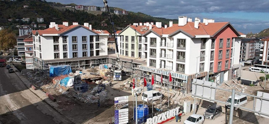 "Son 100 yılda ülkemizde gerçekleşen en büyük sel ve rüsubat baskınının yaşandığı Bozkurt'taki çalışmalar son hızıyla devam ediyor. İlçe merkezinde 679 konutun yapımı son aşamasına geldi. Kasım ayının sonuna bitecek konutlarımız var. Kalanların da aralık ayında işlemleri bitecek. Kabalarının tamamı bitmiş durumda. Bölgede sadece 679 konut yapmıyoruz. Köylerimize de 40 ev yapılacak. Bir köy evimiz bitmiş durumda, 13 köy evinin temeli atıldı."