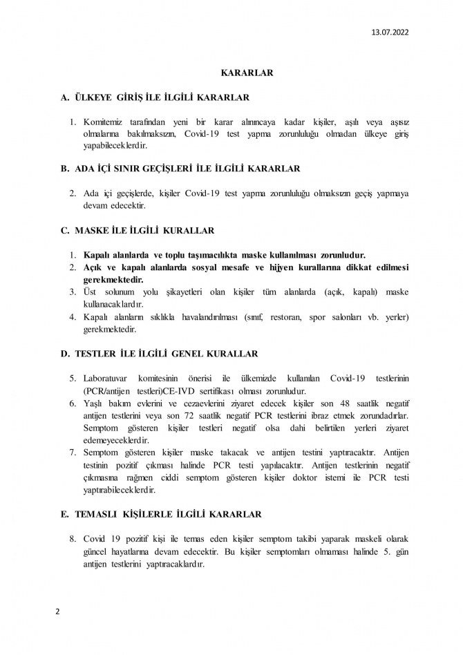İşte kararların tamamı: