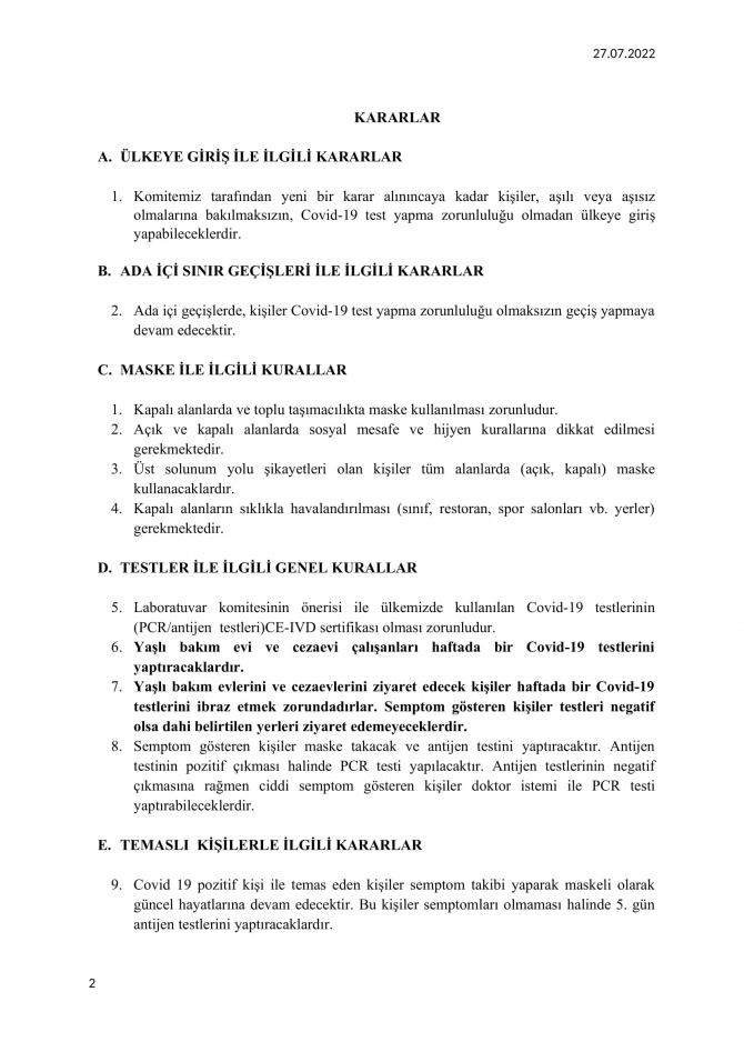 Bulaşıcı Hastalıklar Üst Komitesi tarafından, Coronavirüs tedbirleri çerçevesinde alınan yeni kararlar açıklandı.