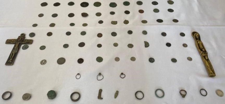 Çeltikçi ilçesinde durdurulan M.A'nın bulunduğu araçta yapılan aramada, Roma, Bizans ve Helenistik dönemlerden kalma 59 sikke, 10 yüzük, 3 mühür, 1 haç ve 5 obje olmak üzere toplam 78 parça tarihi eser ele geçirildi.