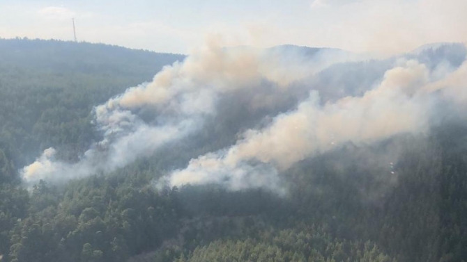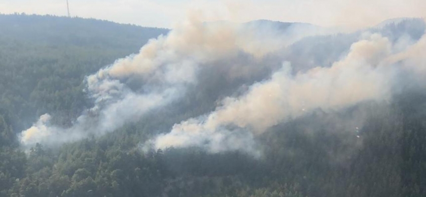 Havadan 7 helikopter ve 3 uçakla karadan ise çok sayıda arazöz ve orman işçisiyle müdahale edilen yangın kontrol altına alınmaya çalışılıyor.