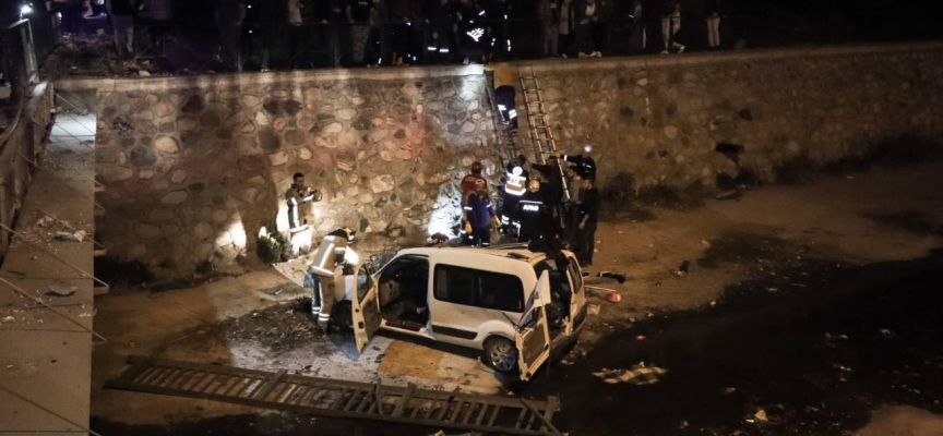 Muhsin Yıldız idaresindeki hafif ticari araç, 11 Eylül Bulvarı'nda seyir halindeyken korkulukları kırarak yaklaşık 5 metre yüksekten dereye devrildi.