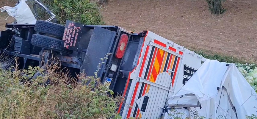 Çarpışmanın etkisiyle savrulan kamyonet şarampole yuvarlandı.