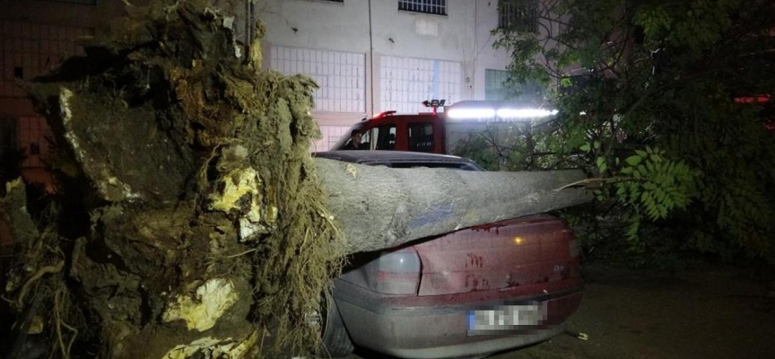 Olay yerine giden ekipler ağacın altında kalan otomobilleri kurtardı.