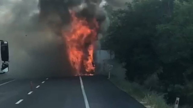 Fidan, aracı yol kenarına çekerek, 40 yolcuyu tahliye etti. Fidan'ın yangın tüpüyle müdahalesine rağmen otobüs, alev aldı. İhbarla bölgeye çok sayıda itfaiye, polis ve sağlık ekibi sevk edildi.