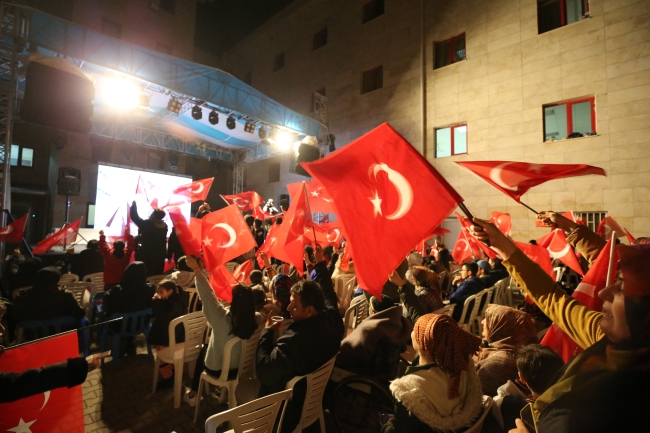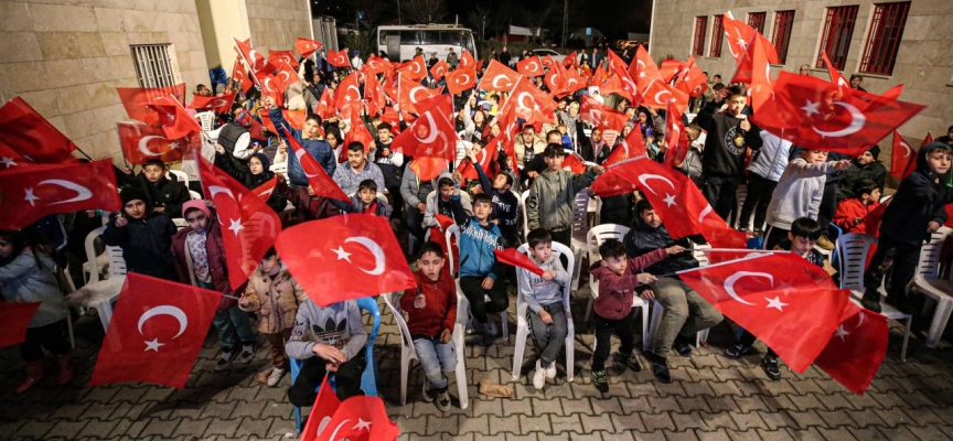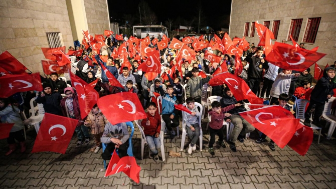 Ellerindeki Türk bayraklarıyla maçın izleneceği alana gelen depremzede aileler, dev ekranda karşılaşmayı takip etti.