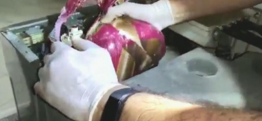 Narkotik köpeği Atlas'ın da yer aldığı aramada, araçtaki çamaşır makinesinin üst kısmına zulalanmış 983,4 gram metamfetamin ele geçirildi.