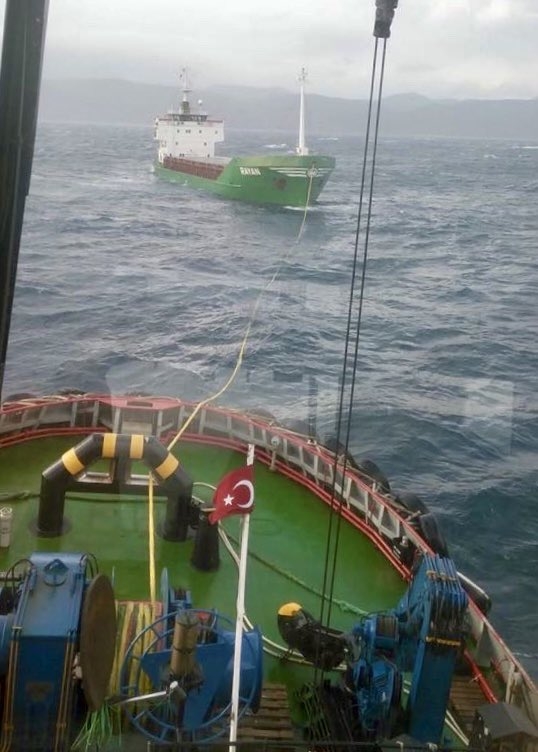 İskenderun'dan Romanya'ya giden 81 metre uzunluğundaki "Rayan" isimli geminin makineleri, Ege Denizi yönünden boğaza girişi sırasında arızalandı.