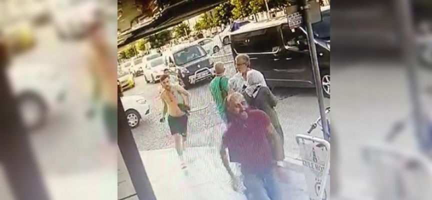 Duruma kızan 4 kişi, kapıdaki görevlilerle tartışıp kavga etmeye başladı.
