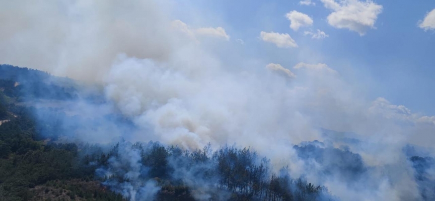 Havadan ve karadan yürütülen çalışmalarla yangın kontrol altına alınmaya çalışılıyor.