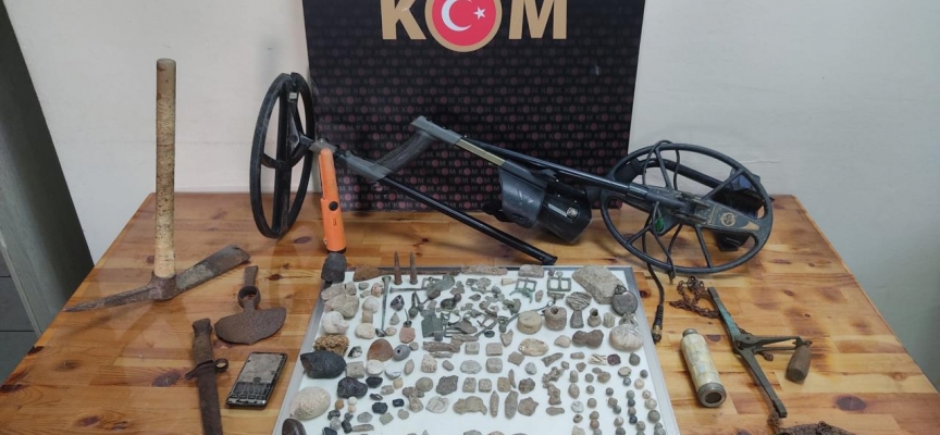 Operasyonda, metal kazma kürek, metal süngü, kazma, el kantarı, dürbün, 13 mermi ve kovan, 2 metal detektör, hassas terazi ve ekipmanları ile tarihi eser niteliği olduğu değerlendirilen 121 kurşun materyal, 63 metal obje, 58 taş obje, 19 sikke ve 1 köstekli saat ele geçirildi.