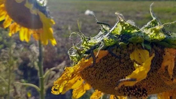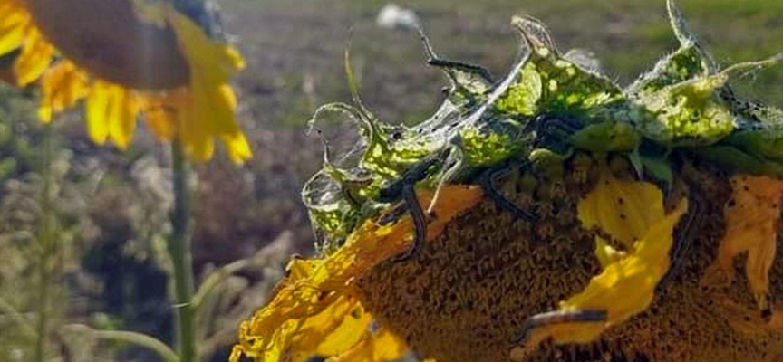 Sayıları oldukça fazla olan tırtıllar, tarlalarda büyük tahribat yarattı. Tırtılların, yeşil yapraklarını yediği ayçiçeklerin gelişimini engellediği belirlendi.