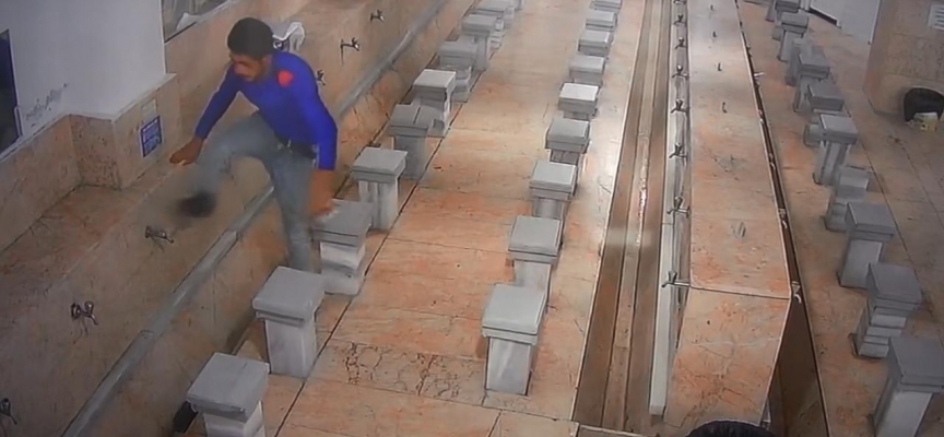 Cemaatin öğle namazını kıldığı sırada camiye gelen kimliği belirsiz bir kişi, abdesthanedeki 17 musluğu tekmeleyerek yerinden söküp, çaldı.
