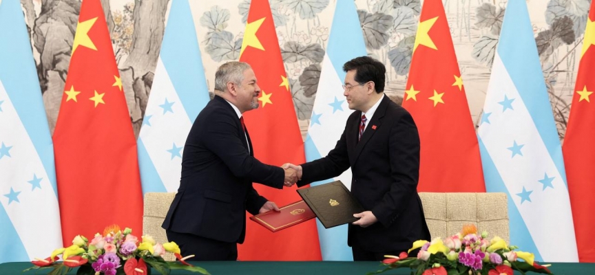 Çin Dışişleri Bakanlığından yapılan açıklamaya göre, Bakan Çin Gang ile Honduraslı mevkidaşı Eduardo Reina'nın diplomatik ilişkilerin kurulmasına ilişkin ortak bildiriyi Pekin'de imzaladı.