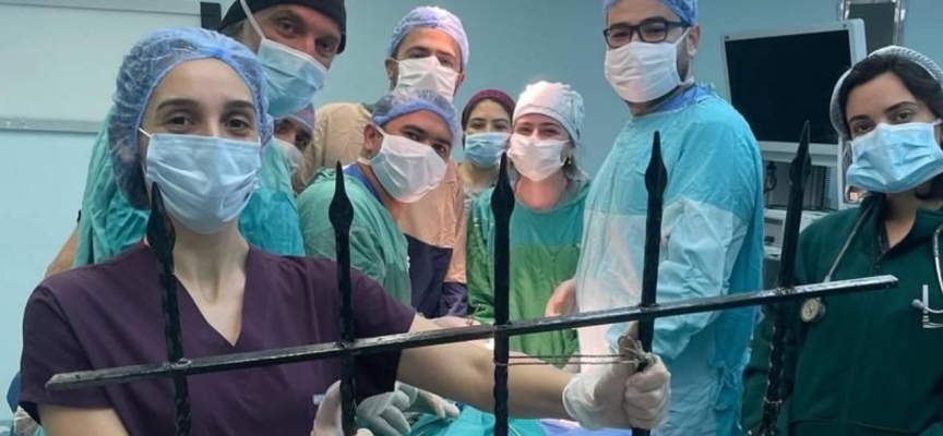 Prof. Dr. Cansız ve ekibine teşekkür eden Daniç, "Olay yerinde müdahale edilip kurtarılana kadar yaklaşık 45 dakika geçiyor. 1,5 saat de Bağcılar Eğitim Araştırma Hastanesinde bekledikten sonra bir yakınımız vasıtasıyla Prof. Dr. Harun Cansız'a ulaşarak Cerrahpaşa'ya sevk ettik. Demir çubuk mızrak gibi boğazından 15 santim içeri girerek hayati tehlike oluşturuyor." dedi.