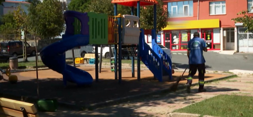 Park neredeyse boş, çünkü burada çocukları oyun oynarken anne ve babaların oturabileceği bank yok.