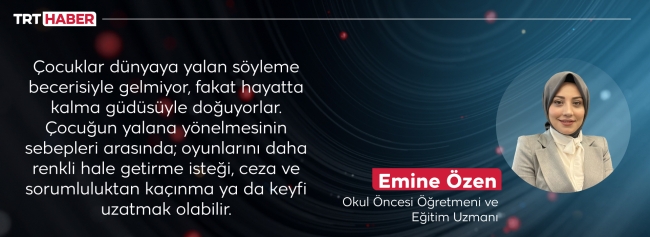 Eğitim Uzmanı Emine Özen yalan söylemenin çocuğun gelişim dönemine ve yalana başvurma ihtiyacına göre değişkenlik gösterdiğini söylüyor ve sözlerine şöyle devam ediyor: