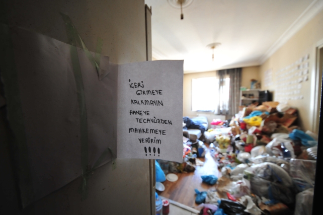 Evin giriş kapısının yanındaki dolaba yapıştırılan kağıtta ise ‘Eve girmeye kalkmayın sizi haneye tecavüzden mahkemeye veririm!’ yazıldığı görüldü. Duvarda not kağıtlarına yazılıp, duvara yapıştırılan farklı dildeki onlarca not ise dikkat çekti. Evin giriş kapısının kilidi yenisiyle değiştirildikten sonra ekipler evden ayrıldı.