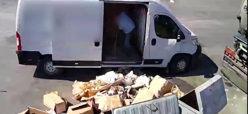 Ardından fırça ile kamyonetinin içindeki kalan atıkları da yere süpürüp, bölgeden ayrıldı. Belediye ekipleri, güvenlik kamerası görüntülerinden çöplerini konteyner yerine yere atan kişiyi tespit edip, kendisine uyardı.