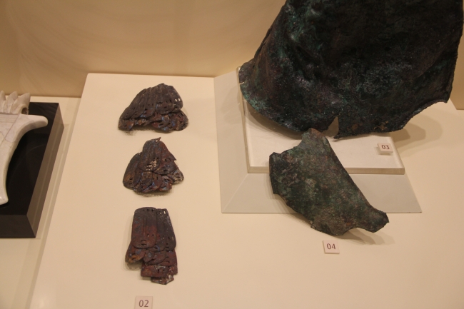 Savaşçı miğferinin Çorum Müzesi’nde bu yıl sergiye çıktığını açıklayan Çorum Müzesi arkeologlarından Özge Eren, “Bu yıl sergiye çıkan bronz miğfer, sivri tepelikli konik formlu ense ve yanak kısmında perçin delikleri vardır. Bu kısımlara yanakları ve enseyi koruyan aparatlar takılmaktadır" dedi.