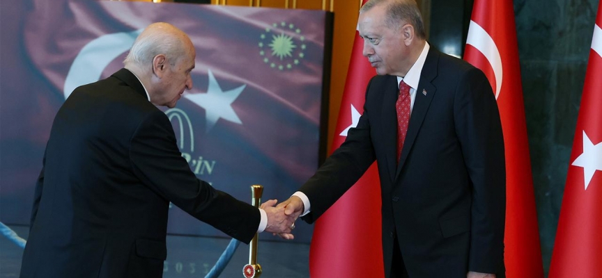 Cumhurbaşkanlığı Külliyesi ana bina girişinde düzenlenen törende, TBMM Başkanı Mustafa Şentop, Cumhurbaşkanı Yardımcısı Fuat Oktay, Anayasa Mahkemesi Başkanı Zühtü Arslan, Yargıtay Başkanı Mehmet Akarca, Danıştay Başkanı Zeki Yiğit, Sayıştay Başkanı Metin Yener, Cumhurbaşkanlığı Kabinesi üyeleri, MHP Genel Başkanı Devlet Bahçeli, Genelkurmay Başkanı Orgeneral Yaşar Güler ve kuvvet komutanları, TBMM üyeleri, kamu kurumlarının yöneticilerinin de aralarında olduğu devlet erkanı, yabancı misyon şefleri ile uluslararası kuruluşların temsilcileri Cumhurbaşkanı Erdoğan'a bayram tebriklerini sundu.