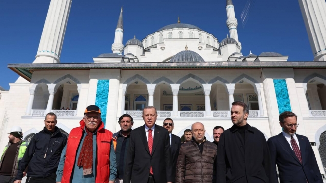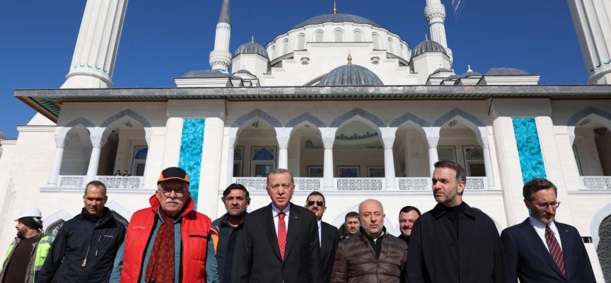 Mimar Sinan'ın kalfalık eseri Süleymaniye Camisi'nden öykünerek tasarlanan Barbaros Hayrettin Paşa Camisi'nde inşa çalışmaları hakkında bilgi alan Cumhurbaşkanı Erdoğan'a, Cumhurbaşkanlığı İletişim Başkanı Fahrettin Altun da eşlik etti.