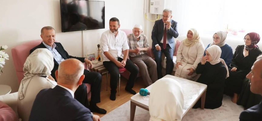 Yeşilyurt ailesinin evine konuk olan Cumhurbaşkanı Erdoğan, çay içti, ev sakinleriyle sohbet etti.