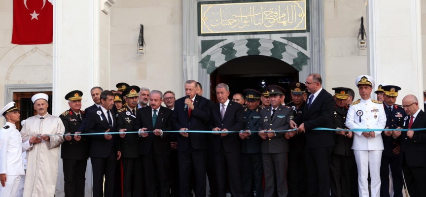 Cumhurbaşkanı Erdoğan, Deniz ve Hava Harp Okulu Komutanlıkları Diploma Alma ve Sancak Devir Teslim Töreni sonrasında yerleşke içindeki Deniz Harp Okulu Camisi'nin açılış törenine katıldı.